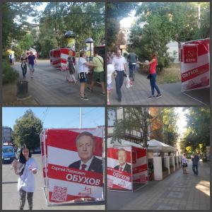 В Краснодаре продолжается агитационная кампания в поддержку Действующего Депутата Государственной Думы VI созыва, секретаря ЦК КПРФ и кандидата по 46 Краснодарскому одномандатному округу Сергея Обухова. Актив Краснодарского городского отделения КПРФ и ЛКСМ РФ агитирует на центральных улицах города за нашего кандидата. Раздается агитационная продукция, в том числе последний выпуск бюллетеня Краснодарская правда. Коммунисты и комсомольцы стараются донести до краснодарцев программу партии и Сергея Павловича.