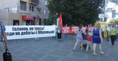 Тем временем, на улице Дзержинского и на улице Селезнева состоялись пикеты в поддержку Сергея Обухова. Также участники пикетов призвали кандидата от партии Единая Россия В. Евланова выйти на дебаты с депутатом-коммунистом. Напомним, что в субботу прошел Форум наблюдателей КПРФ, где Сергей Обухов публично обратился к своему оппоненту и вызвал его на дебаты. Однако до настоящего времени ответа не поступило, а потому актив партии и гражданские активисты требуют от Евланова проявить гражданскую позицию и выйти на дебаты.