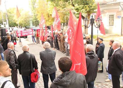 5 октября у здания Крымского рескома КПРФ состоялась протестная акция, приуроченная к 23-й годовщине событий расстрела Верховного Совета РСФСР. В акции приняли участие коммунисты Симферополя, ветераны партии, представители Ленинского Комсомола, городских Симферопольских отделений Союза Советских офицеров и Детей войны. Участники акции держали транспаранты «Не забудем! Не простим!», «Программу КПРФ в жизнь!», «Слава защитникам Дома Советов!», флаги КПРФ и Ленинского Комсомола.