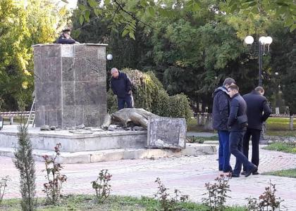 Тут даже нечего сказать... Вроде мы не Киев и не Днепропетровск. До сих пор памятники Ленину уничтожали только украинцы и немецкие фашисты.