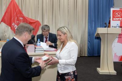 вручено Обскому местному отделению КПРФ, первый секретарь Наталия Бессонова.