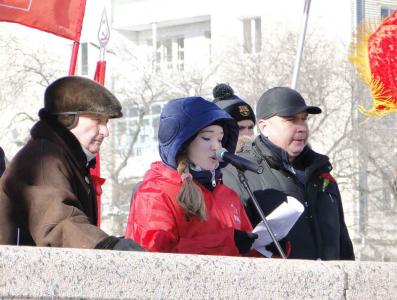 Эмоционально выступила первый секретарь Благовещенского горкома комсомола Дарья Черникова. Она обличила попытки идеологов капитализма принизить значения Октября и доказала, что идеалы Революции сегодня близки многим молодым людям.