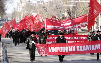 Праздничное шествие с колоннами знаменосцев, украшенных автомобилей, духовым оркестром началось от площади Победы и завершилось митингом на площади Ленина. В праздновании приняло участие порядка 350 человек. Последнее время в акциях КПРФ начало участвовать много молодых людей. И в этот раз колонны в красными флагами заметно помолодели. Поддержать достижения октября 1917 года вышли несколько десятков комсомольцев, воспитанники спортклуба КПРФ.
