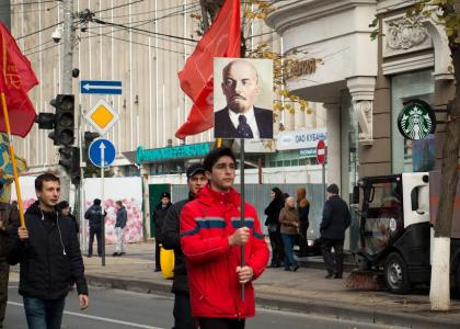 духовой оркестр, исполнявший марши и песни советской эпохи. Колонну возглавили