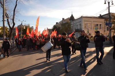 6 ноября, накануне очередной годовщины Великой Октябрьской социалистической революции, коммунисты Астраханской области провели шествие и митинг.