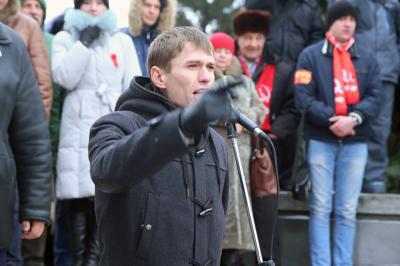 В заключение митинга секретарь Омского обком КПРФ Дмитрий Горбунов зачел