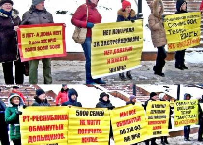 мы видим людей, которые пострадали (обманутые дольщики), причем, в этом прямо и