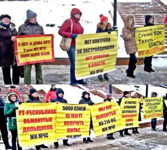 мы видим людей, которые пострадали (обманутые дольщики), причем, в этом прямо и