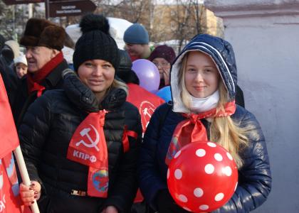 Демонстрацию возглавили секретари Кировского обкома КПРФ и депутаты Законодательного Собрания Кировской области. В передних рядах демонстрантов шли молодые коммунисты и комсомольцы, за ними – представители трудовых коллективов, ветераны, члены и сторонники Коммунистической партии. Почетная миссия – нести знамя Кировского областного отделения КПРФ – была возложена на члена Кировского горкома КПРФ Александра Вылегжанина.