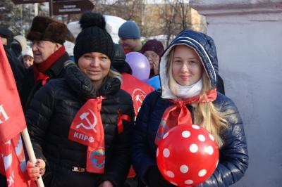 В воскресение, 6 ноября, несмотря на мороз, областное отделение КПРФ провело шествие и праздничное мероприятие на Театральной площади. Всего в торжествах по случаю 99 годовщины Великой Октябрьской социалистической революции в Кирове приняло участие около 3000 человек.