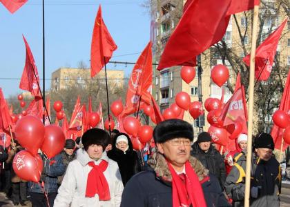 Столичный же Абакан всегда отмечает Красный Октябрь с размахом. В этот раз демонстрация получилась очень красочной, заметной издалека, благодаря огромному количеству алых воздушных шариков. Отличная погода только добавляла настроения демонстрантам, которых собралось более 300 человек.