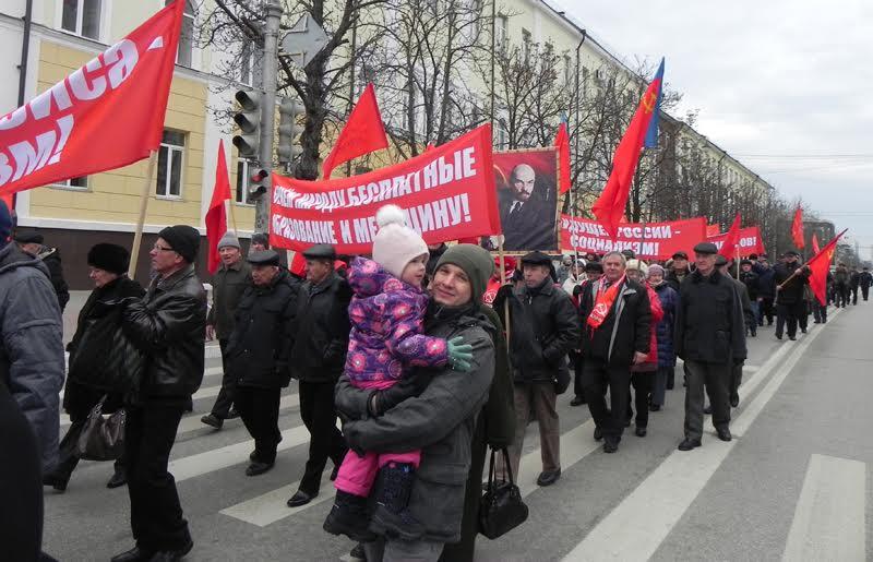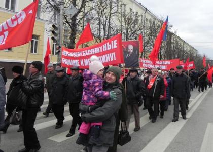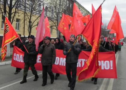 горком КПРФ организовал праздничную демонстрацию. В её рядах шли также