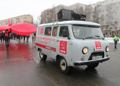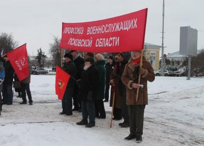 Демонстрацию и торжественный митингв честь 99-ой годовщины Великой Октябрьской социалистическойреволюции провело сегодняПсковское областное отделение КПРФ.