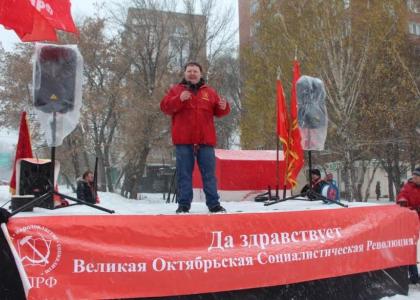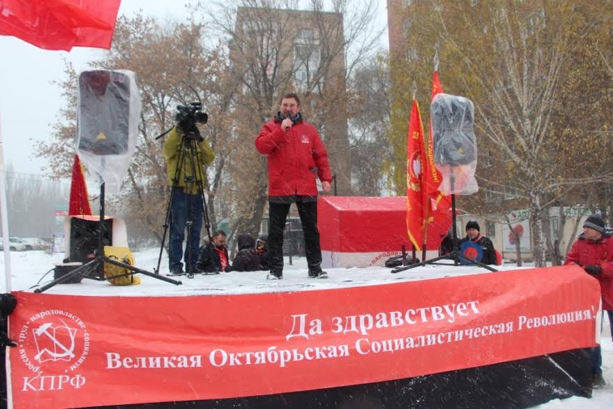 Лозунги митинга: «Слава Великому Октябрю!»,