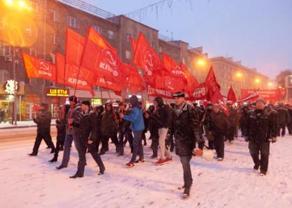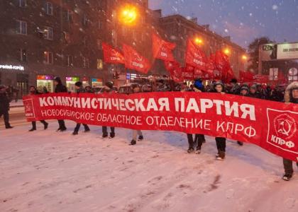 Традиционная колонна левых сил во главе с КПРФ прошла от Дома офицеров до площади Ленина. В первых рядах – мэр Новосибирска Анатолий Локоть, депутат Государственной думы Вера Ганзя, заместитель председателя Законодательного собрания Владимир Карпов, заместитель председателя Совета депутатов Новосибирска Ренат Сулейманов.