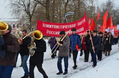Колонна демонстрантов с флагом СССР, флагами КПРФ, партии «Рот-фронт», многочисленными транспарантами, портретами В.И. Ленина и И.В. Сталина прошествовала по проспекту Победы до площади Свободы. Митинг прошел у памятника В.И. Ленину. Выступили первый секретарь Вологодского обкома КПРФ А. Морозов, первый секретарь Вологодского горкома КПРФ А. Шириков, коммунисты Е. Коноплев, А. Буров, С. Городишенин, жители Вологды.