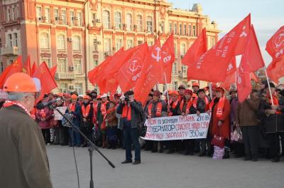 Стук шахтерских касок по ростовской площади возле памятника В.И. Ленина в 99-ю годовщину Великой Октябрьской Социалистической революции напомнил о сути пролетарской борьбы за право на достойную жизнь.