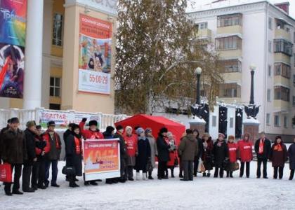 Пикет КПРФ у кинотеатра «Россия» стал самым многочисленным за последние годы — он собрал коммунистов и сторонников КПРФ, членов РКРП, общественных организаций «Дети войны», «Русский лад», «Надежда России», ЛКСМ и других активистов, неравнодушных к великому советскому прошлому нашей страны.