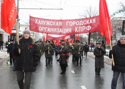 В честь 99-й годовщины Великой Октябрьской социалистической революции Калужским городским комитетом КПРФ совместно с Ленинским коммунистическим союзом молодежи, Движением в поддержку армии, организацией «Дети войны», советом рабочих и служащих города были проведены торжественное шествие и митинг.