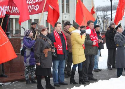 Коммунисты вышли на митинг с лозунгами: «Великому Октябрю — слава!», «Ленин! Октябрь! Победа!», «Власть народа – победа над бедностью!», «Дню Великого Октября – статус государственного праздника!», «Государство, повернись лицом к народу!», «Власть – миллионам, а не миллионерам!», «Курортному сбору – нет! Прогрессивному налогу – да!», «Труд и капитал – непримиримы!», «Путин, выдай зарплату работникам КЗАЭ!», «Хватит лицемерить насчет наших зарплат!», «Землю – крестьянам! Заводы – рабочим! Олигархам – шиш!».
