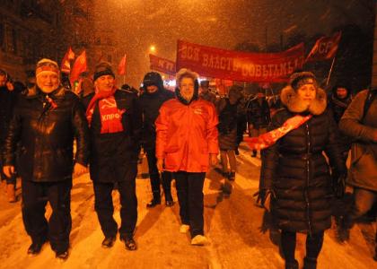 Более тысячи человек 7 ноября 2016 года приняли участие в праздничных шествии и митинге по случаю 99-й годовщины Великой Октябрьской социалистической революции, организованных Санкт-Петербургским городским отделением КПРФ.