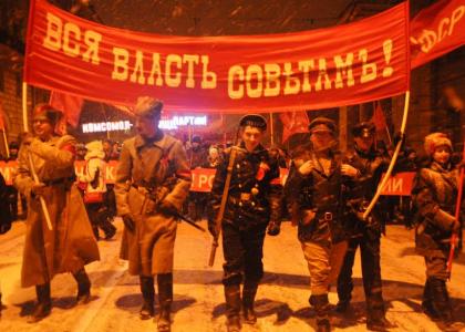 Не будет лишним подчеркнуть, что ленинградские коммунисты уже много лет творчески подходят к организации праздничных мероприятий – во главе колонны коммунистов шли революционные матросы и солдаты из Военно-патриотического клуба «комсомолец» под лозунгом «Власть Советам!», а по всему ходу движения колонны демонстранты несли транспаранты, раскрывающие основные социально-экономические требования партии. Уже на месте проведения митинга его участников ждал сюрприз – между выступлениями на митинге известную песню «Комсомольцы-добровольцы» исполнил заслуженный артист России Антон Олейник.