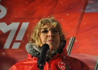Открыла митинг своим выступлением первый секретарь Санкт-Петербургского городского комитета КПРФ, член ЦК КПРФ Ольга Архиповна Ходунова. Она обратила внимание собравшихся на то, что идеи Великого Октября не умерли – они находят своих последователей на всех уголках земного шара. Быстрыми темпами развиваются социалистические Китай, Вьетнам, Куба, КНДР, идеи Октября живут во многих странах Латинской Америки, строящих социализм – в Венесуэле, Боливии, Никарагуа, Эквадоре. Вместе с тем, она отметила, что власть в России сегодня предпринимает очередные атаки на социальные завоевания, дарованные нашему народу Великим Октябрём, и привела ужасающие цифры деградации России как в экономическом, так и в нравственном плане. По словам О.А. Ходуновой, политике властей по одурманиванию населения коммунистам необходимо противопоставить максимально широкое распространение программных материалов КПРФ, в которых разъясняется основное противоречие между трудом и капиталом, а также непреходящее значение тех социальных завоеваний, которые были дарованы народу Революцией.