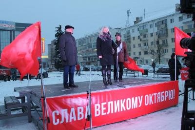 Вопреки позиции официальных властей, безуспешно пытающихся подменить память о Великой Октябрьской социалистической революции непонятным праздником-суррогатом, несмотря на метель и пронизывающий ветер, 7 ноября в Костроме на Октябрьской площади прошел митинг, посвященный событиям 99-летней давности.