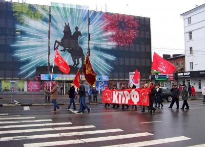 трудящимся!», «Нет росту цен и тарифов!», «Программу КПРФ – в жизнь!», «Закон