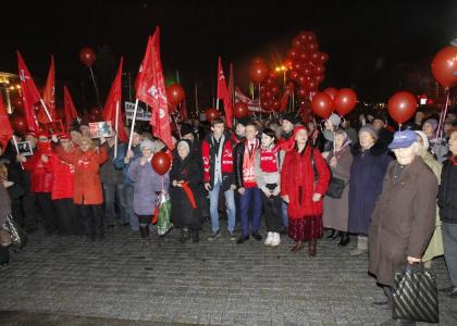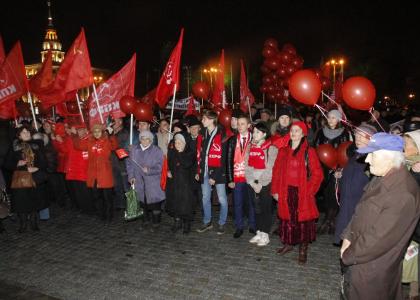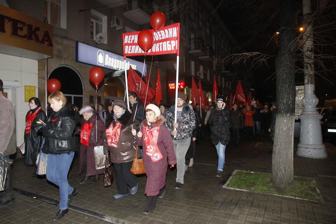 Канун 99-й годовщины Великой Октябрьской социалистической революции выдался непростым для воронежских коммунистов и всех, кто разделяет идеалы Октября: городские службы, с которыми были согласованы митинг и демонстрация, вдруг заявили, что отказываются разрешить шествие КПРФ по проспекту Революции из-за помех транспорту и пешеходам. Только после вмешательства депутатов-коммунистов удалось добиться, что колонна пойдёт по тротуару. К тому же почти сутки шёл проливной дождь. Однако за несколько часов до мероприятия ненастье отступило, а что касается власти, то она оказала себе медвежью услугу: краснознамённая демонстрация вовлекла в свои ряды десятки воронежцев, находившихся после рабочего дня на проспекте.