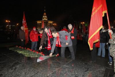 Канун 99-й годовщины Великой Октябрьской социалистической революции выдался непростым для воронежских коммунистов и всех, кто разделяет идеалы Октября: городские службы, с которыми были согласованы митинг и демонстрация, вдруг заявили, что отказываются разрешить шествие КПРФ по проспекту Революции из-за помех транспорту и пешеходам. Только после вмешательства депутатов-коммунистов удалось добиться, что колонна пойдёт по тротуару. К тому же почти сутки шёл проливной дождь. Однако за несколько часов до мероприятия ненастье отступило, а что касается власти, то она оказала себе медвежью услугу: краснознамённая демонстрация вовлекла в свои ряды десятки воронежцев, находившихся после рабочего дня на проспекте.