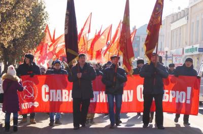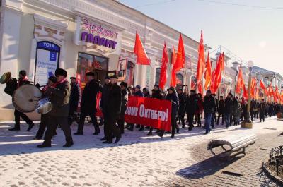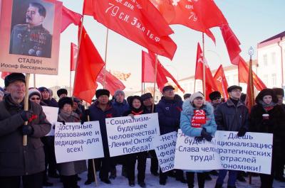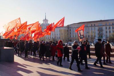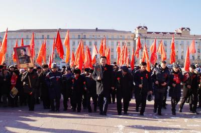 7 ноября 2016 года на площади Революции г.Улан-Удэ состоялся митинг, посвящённый 99-й годовщине Великой Октябрьской социалистической революции. Несмотря на морозную погоду, на площади собрались не только те, кому дорога эта дата, но и молодое поколение — все с хорошим настроением, с плакатами, флагами, транспарантами. Присутствие долгожданного праздника помогал ощущать духовой оркестр, исполнявший революционные и советские мелодии.
