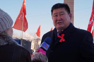 митинг первый секретарь рескома БРО КПРФ, член Совета Федерации ФС РФ В.М. Мархаев. Он поздравил присутствующих от