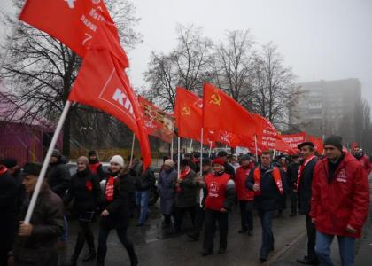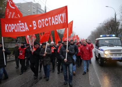 флагами, униформой с символикой КПРФ, гвоздиками и лозунгами: «Королёва – в