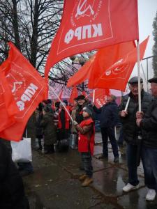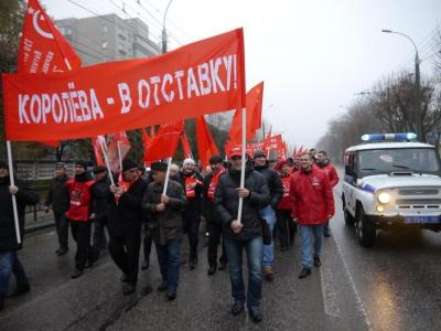 флагами, униформой с символикой КПРФ, гвоздиками и лозунгами: «Королёва – в
