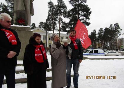 В общей сложности в этот заснеженный день на улицы Ленинградской области вышли около двух тысяч человек, чтобы еще раз заявить: идеалам Великого Октября по-прежнему верны!