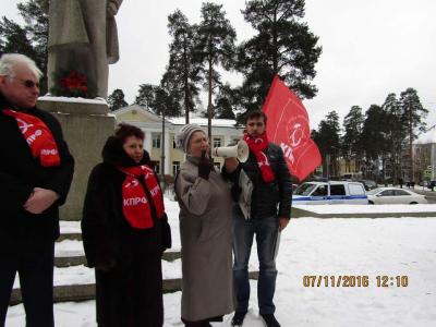 В общей сложности в этот заснеженный день на улицы Ленинградской области вышли около двух тысяч человек, чтобы еще раз заявить: идеалам Великого Октября по-прежнему верны!