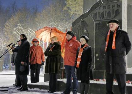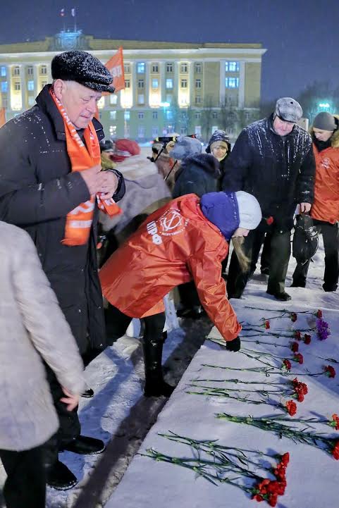 7 ноября в Великом Новгороде у монумента вождю, у памятника Владимиру Ильичу Ленину на площади Победы-Софийская собрались коммунисты и их сторонники. В день, посвященный 99-летию Великой Октябрьской революции, несмотря на снег и штормовое предупреждение, под красные флаги и знамёна встали сотни жителей областного центра.