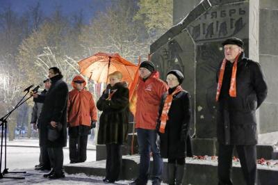 7 ноября в Великом Новгороде у монумента вождю, у памятника Владимиру Ильичу Ленину на площади Победы-Софийская собрались коммунисты и их сторонники. В день, посвященный 99-летию Великой Октябрьской революции, несмотря на снег и штормовое предупреждение, под красные флаги и знамёна встали сотни жителей областного центра.
