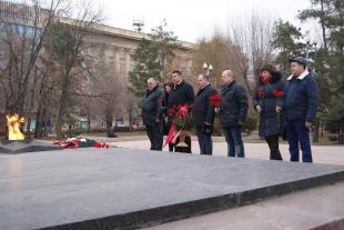 После Пленума делегация коммунистов возложила цветы к Вечному огню на Аллее Героев в честь годовщины контрнаступления советских войск под Сталинградом.