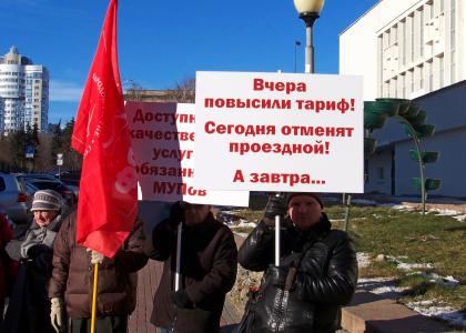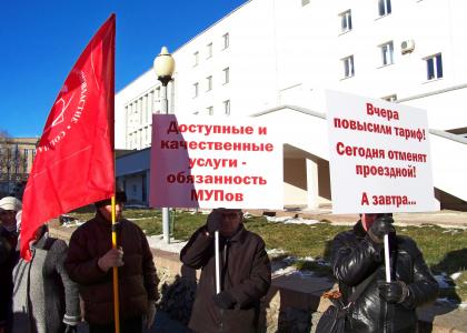 24 ноября с 13 до 14 часов у здания администрации города Орла прошёл пикет против отмены безлимитных проездных билетов. В пикете участвовали примерно 40 человек. В руках пикетчики держали плакаты с лозунгами: «Рост цен и тарифов – итог политики «партии власти», «Позор горсовету! Цены на проезд повысил. Качество перевозки ухудшилось!», «КПРФ против решения проблем МУПов за счёт горожан! Мы за разумный подход!», «Достойные и качественные услуги – обязанность МУПов», «Депутат, выражай интересы горожан, а не занимайся лобби», «Вчера повысили тарифы! Сегодня отменят проездной! А завтра …».