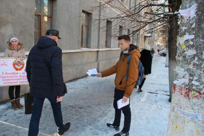 одиночные пикеты. Студенты держали в руках плакаты «80 лет Сталинской