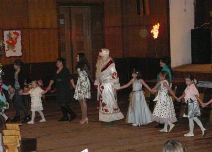 Дед Мороз и Снегурочка устроили Новогоднюю сказку, водили хороводы с детьми и родителями, устраивали конкурсы, читали стихи и пели песни. В начале мероприятия выступила Галина Николаевна и поздравила всех собравшихся, их было 102 человека, с Новым Годом, пожелала, чтобы в наступающем году жизнь стала лучше! За участие в конкурсах ребята получили не только сладкие призы, но и игрушки.