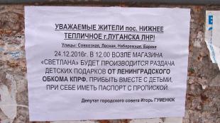 Две тысячи новогодних подарков, сладости, молоко, игрушки получили дети Луганской Народной Республики от коммунистов Москвы, Московской, Ленинградской, Липецкой, Воронежской областей и других регионов Российской Федерации.