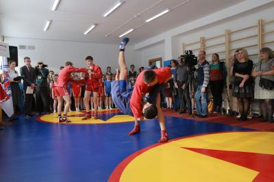 В Октябрьском районе города Новосибирска состоялось открытие первого зала для занятий самбо. Всего в 2017 году в новосибирских школах будет запущено 10 залов для спортивной борьбы.