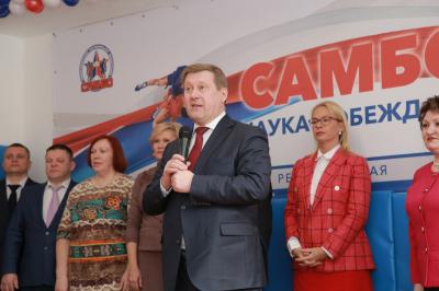 торжественном открытие первого зала самбо в школе №2 Октябрьского района в