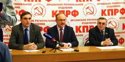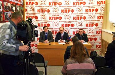 13 февраля в помещении Орловского обкома КПРФ состоялась пресс-конференция, в которой приняли участие первый секретарь Орловского обкома КПРФ В.Н. Иконников, секретарь обкома по идеологии Е.Е. Прокопов, руководитель фракции КПРФ в Орловском областном совете В.Н. Морозов.