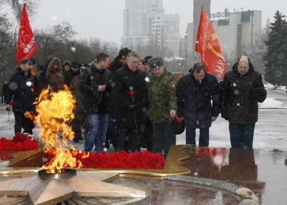 В день 99-летия Советской Армии и Военно-морского Флота на площади Победы собрались на митинг коммунисты Воронежа, представители общественных организаций «Дети войны» и «Союз Советских офицеров».