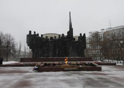 молчания погибших защитников Родины. К подножию памятника защитникам Воронежа,