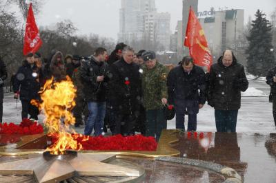 В день 99-летия Советской Армии и Военно-морского Флота на площади Победы собрались на митинг коммунисты Воронежа, представители общественных организаций «Дети войны» и «Союз Советских офицеров».